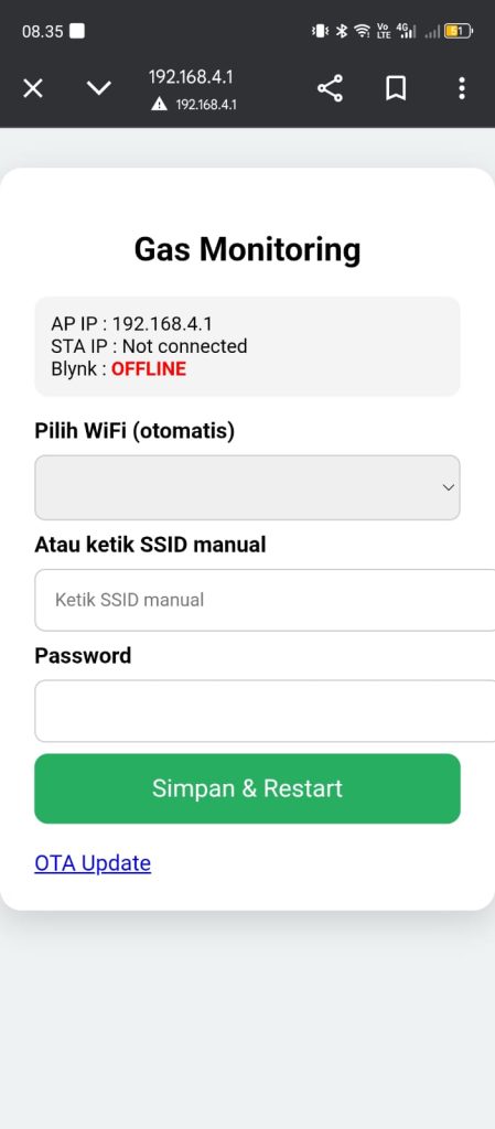 4. Tampilan kadar gas pada blynk
