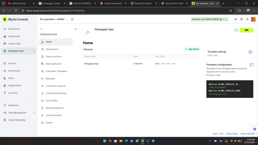 #define BLYNK_TEMPLATE_NAME "Peringatan Gas"
